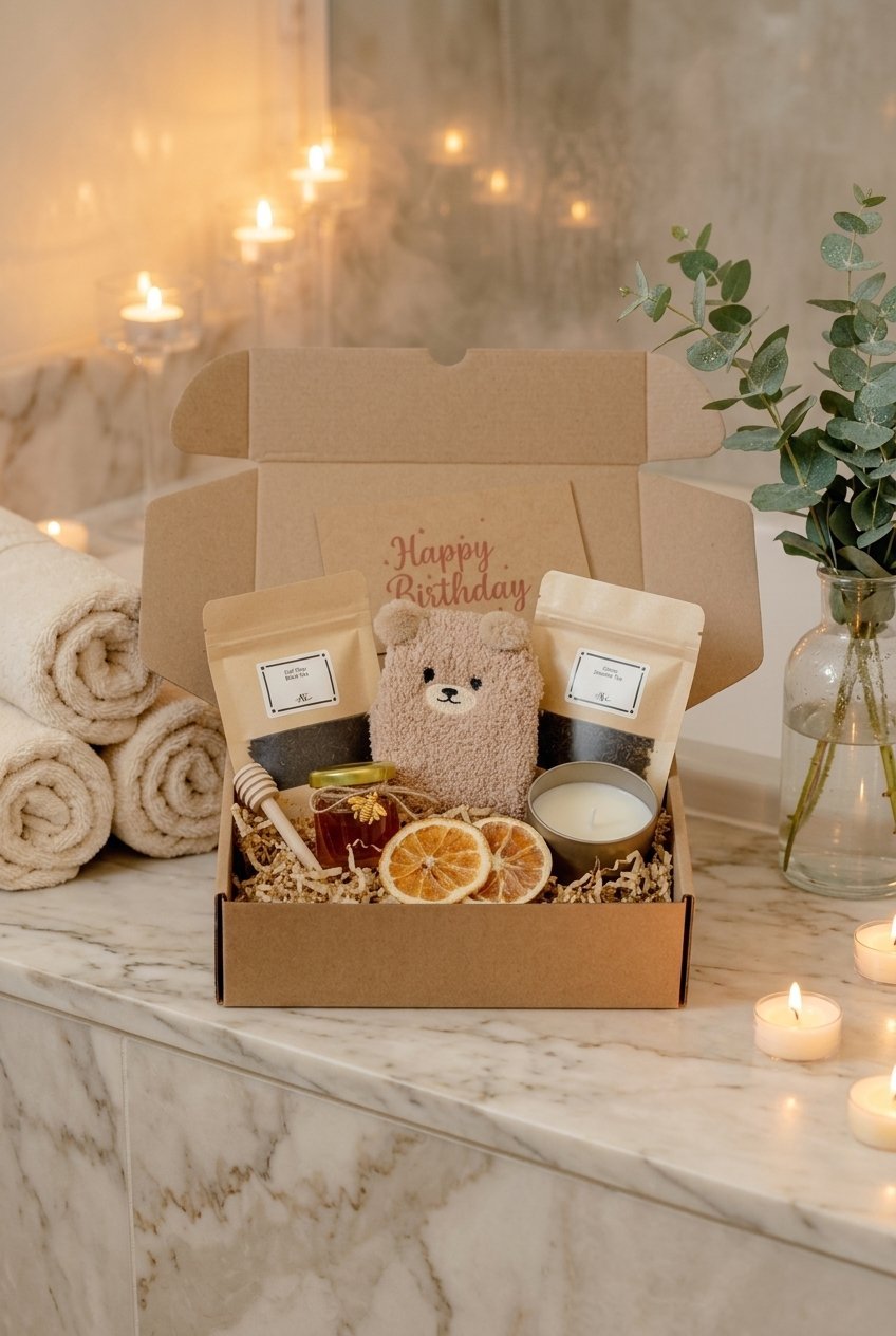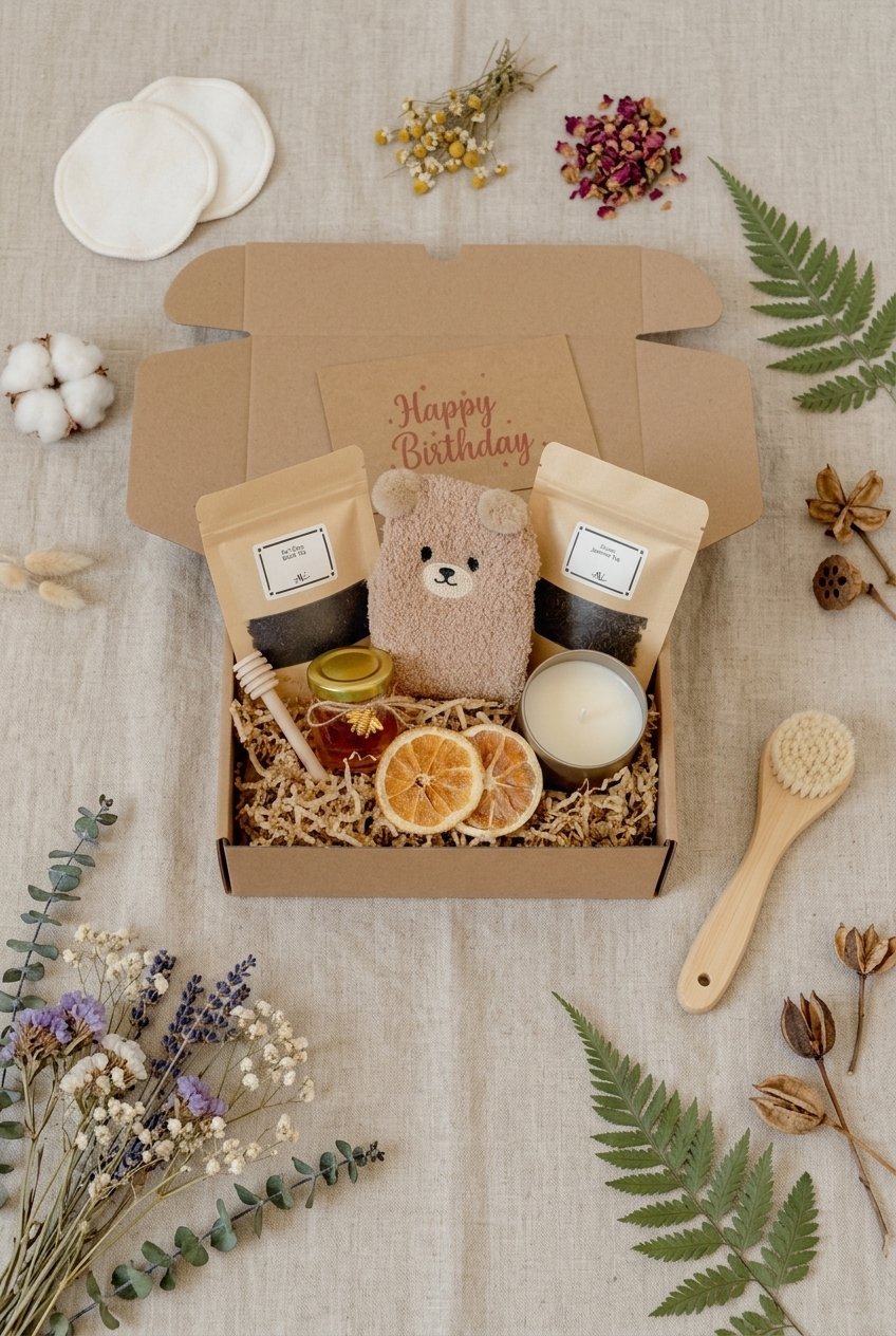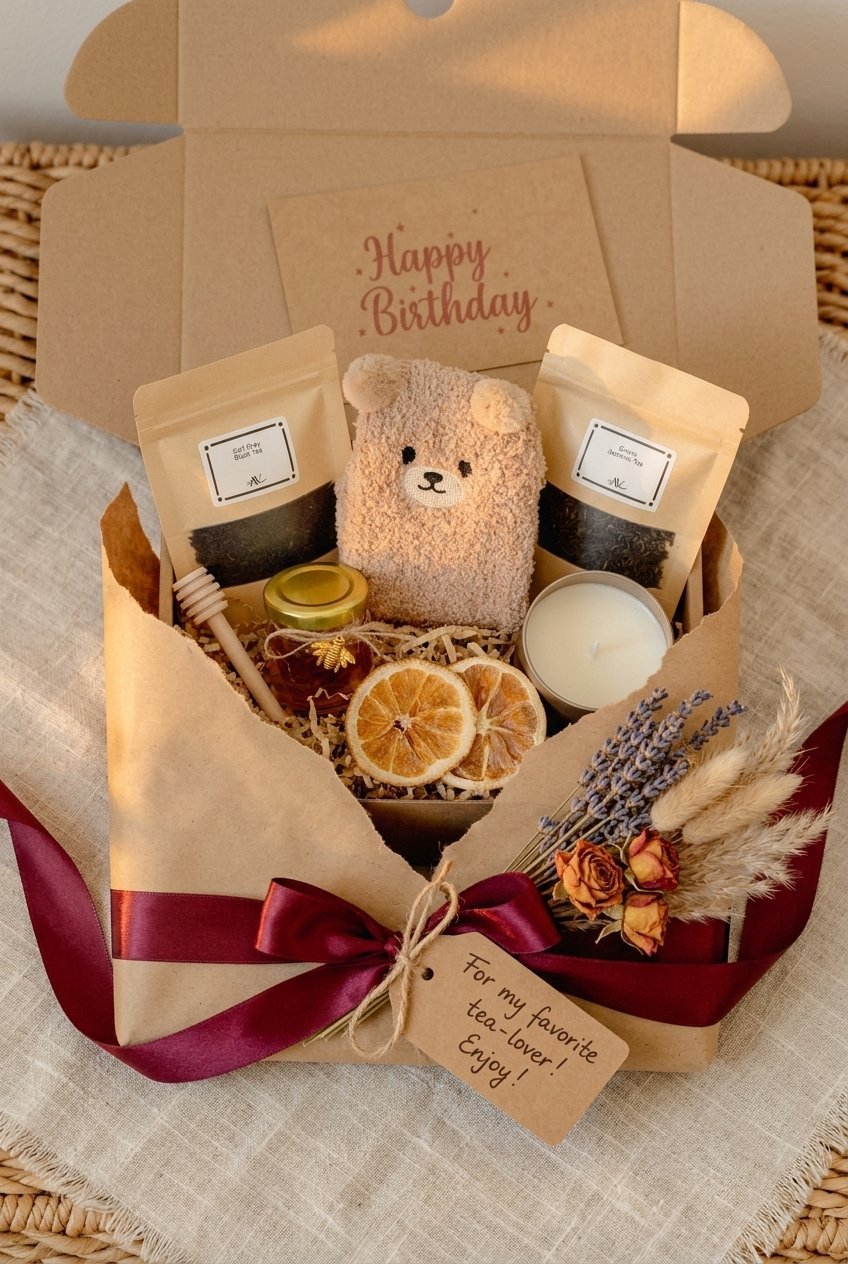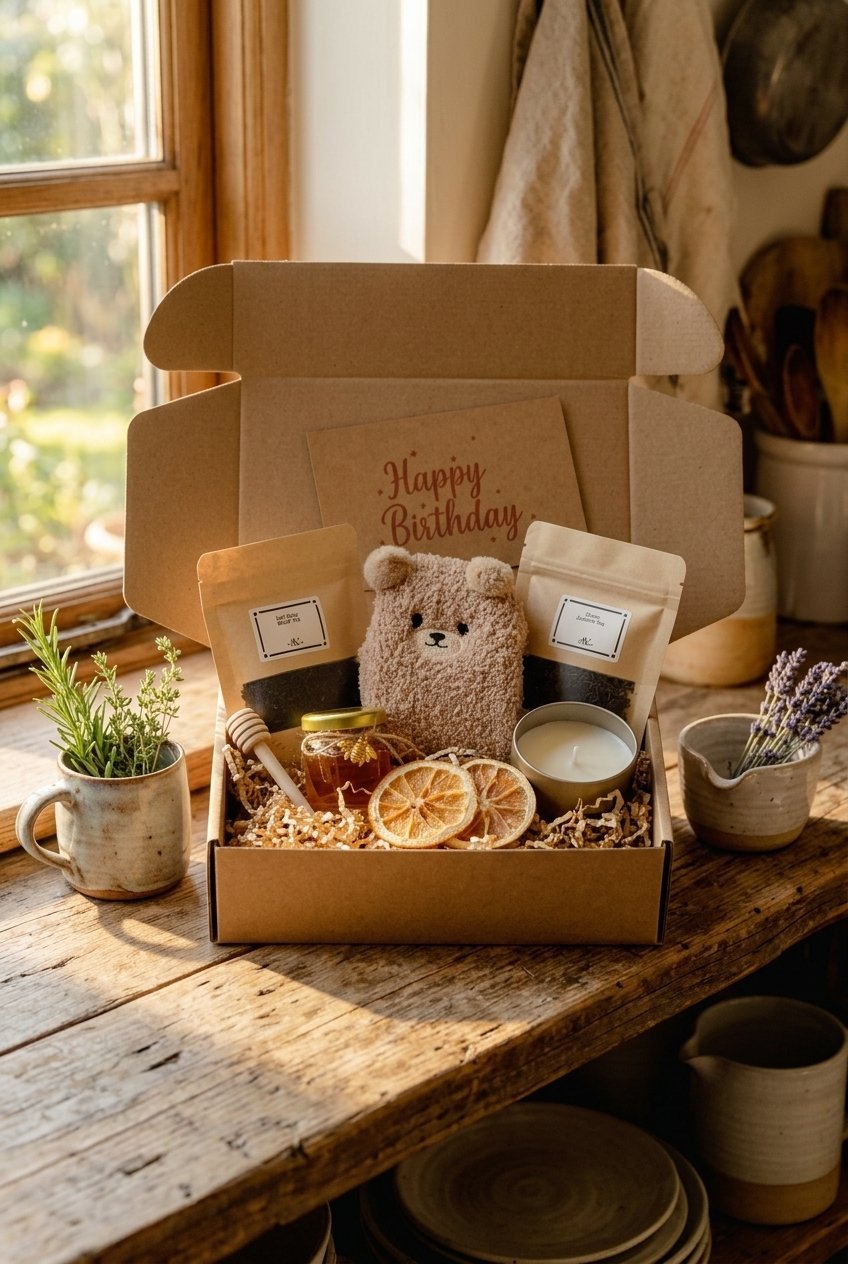 Cozy Gift Box: Tea, Honey, Bear Socks & Vanilla Candle