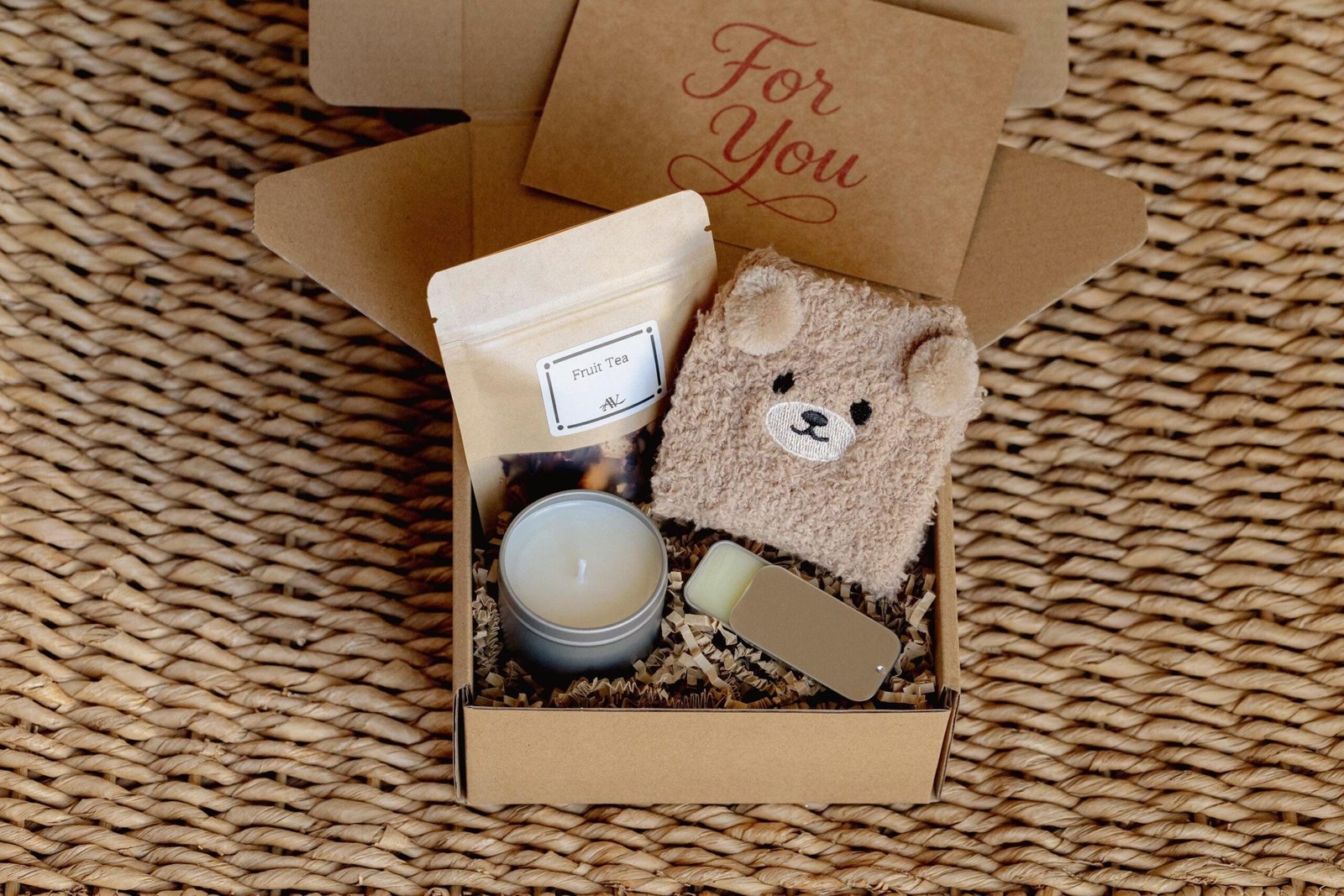 Hygge Gift Box: Cute Socks, Tea & CandleHandmade gift set with Jar of Natural Honey, Cute Bear Socks, Soy Scented Candle, Chamomile Tea. Thoughtfully crafted with natural ingredients.
